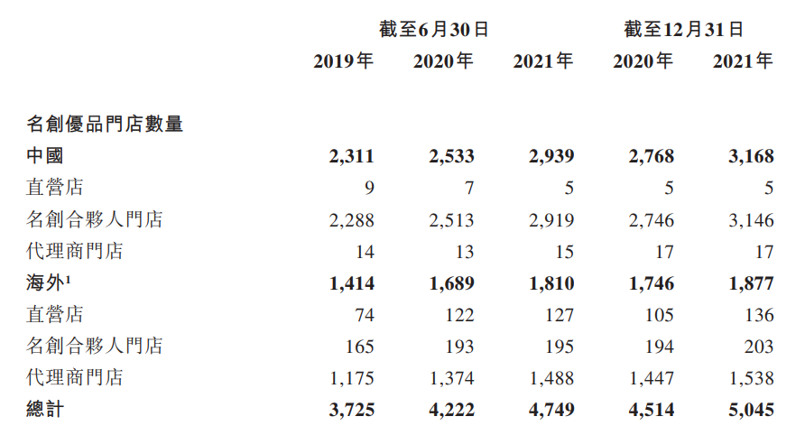 从2013年第一家门店落地至今,九年时间,名创优品逐步在全球范围内建立了庞大的门店网络。根据招股书,截至2021年12月31日,名创优品在全球自有品牌综合零售行业拥有最广泛的全球门店网络,在全球共计约100个国家和地区,设立5045家名创优品门店,在中国有3168家名创优品门店,在海外有1877家名创优品门店。