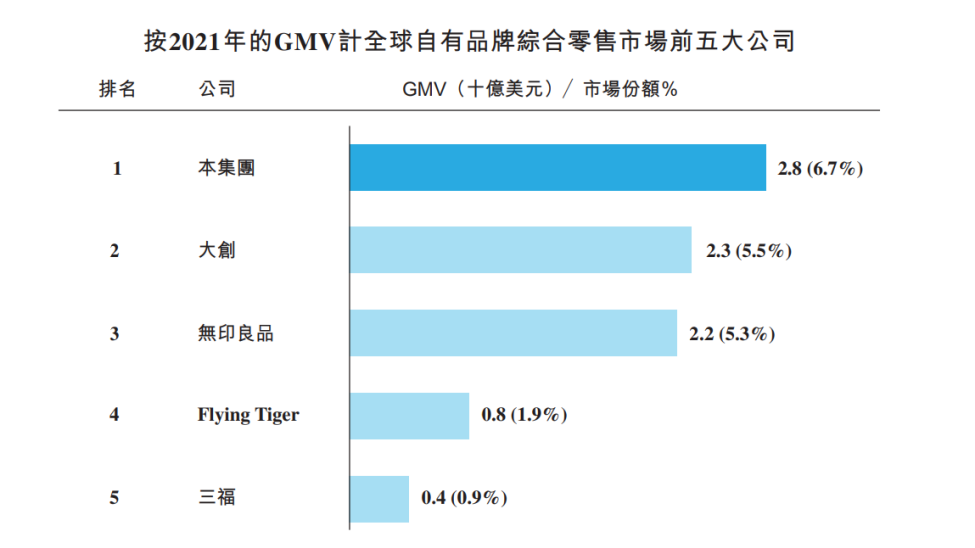 另外,根据弗若斯特沙利文报告,2021年,名创优品通过门店网络销售的产品GMV总计约人民币180亿元(28亿美元),已经成为全球最大的自有品牌生活家居综合零售商。