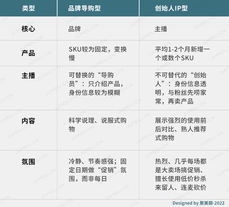 我们 把 知名 品牌 的 直播间 主播 与 快 品牌 创始人 IP做 了 一个 对比 , 前者 为 了 避免 品牌 与 人设 的 强 绑定 , 大多 是 以 品牌 为 中心 的 “导购型” 人设, 而 后者“快品牌 ” 一切都以 主播 人设 为 中心 。