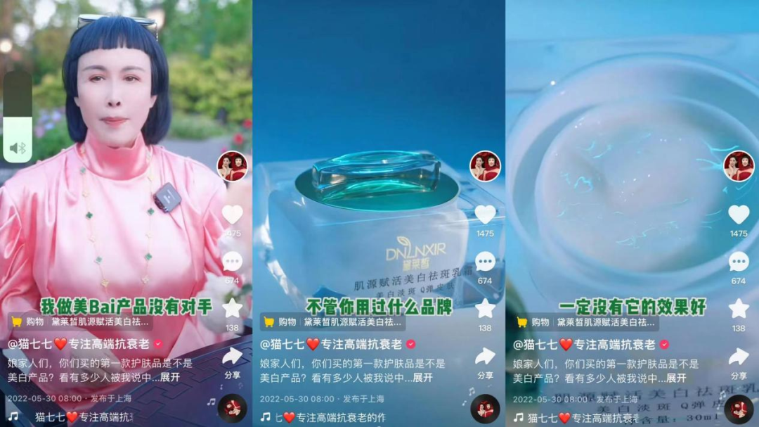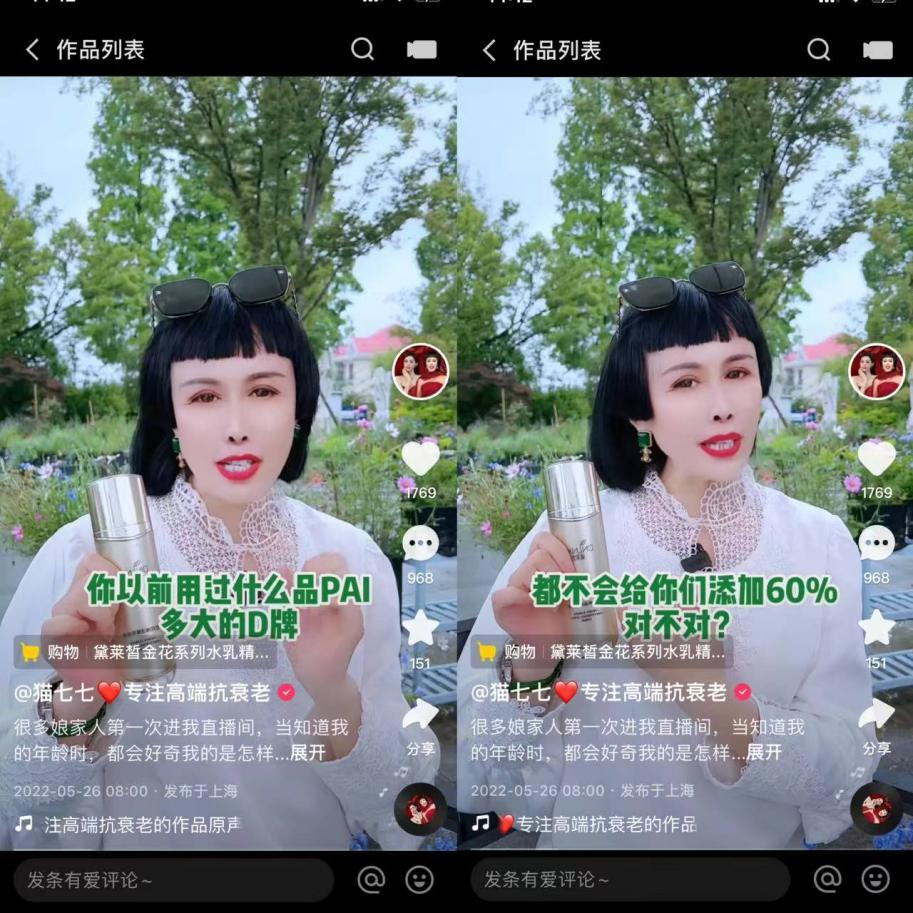 而黛莱皙的猫七七,则经常在短视频和直播间中,经常暗示“黛莱皙的产品比大牌更好”。