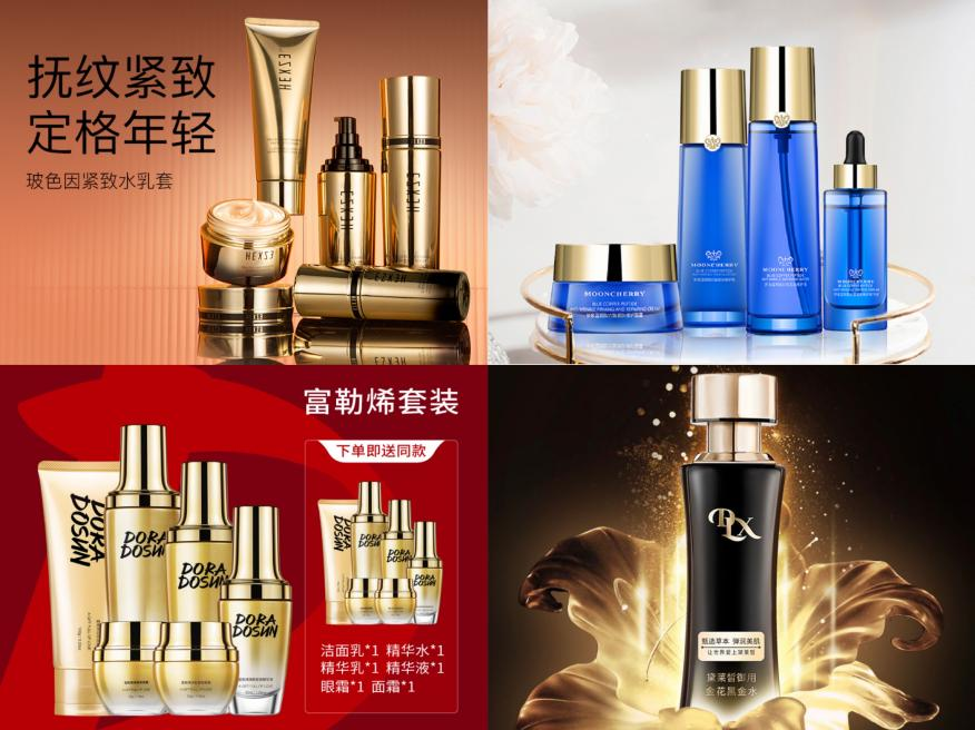 并且,聚美丽还发现,快手上热卖的品类大多以护肤套装为主,主打淡纹抗衰、美白淡斑、祛除眼袋等强功效。包装则以金黄色、玫瑰金为主色调。