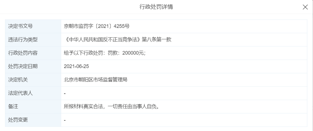 该品牌 最终被北京市朝阳区市场监督管理局认为,该公司的行为属于“经营者对其商品的性能、功能,作虚假或者引人误解的商业宣传,欺骗、误导消费者”,依据《中华人民共和国反不正当竞争法》第二十条的规定,对其作出罚款20万元的处罚。
