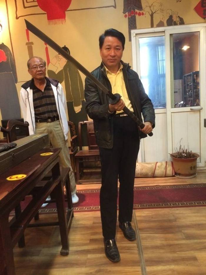 这就是他当时,我拍的几张他当时舞刀的这个镜头。
