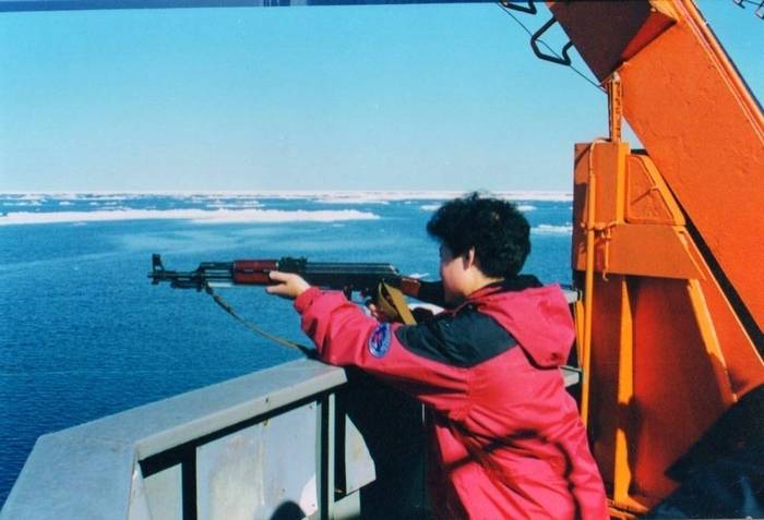 这就是谢思梅后来去北极探险的时候,就是她在船上为什么拿着枪呢?这是打北极熊呢。