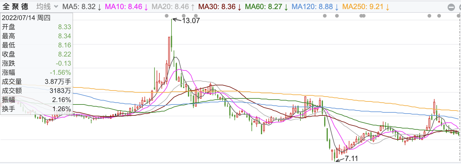 截至7月14日收盘,公司报8.22元/股,较1月14日的高点13.07元/股已跌去37%。