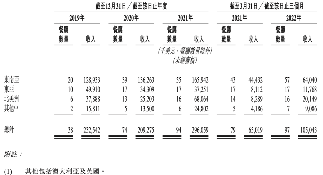 从具体的布局来看,截至2022年3月,东南亚57家、东亚17家、北美洲16家,澳大利亚及英国等共计7家。