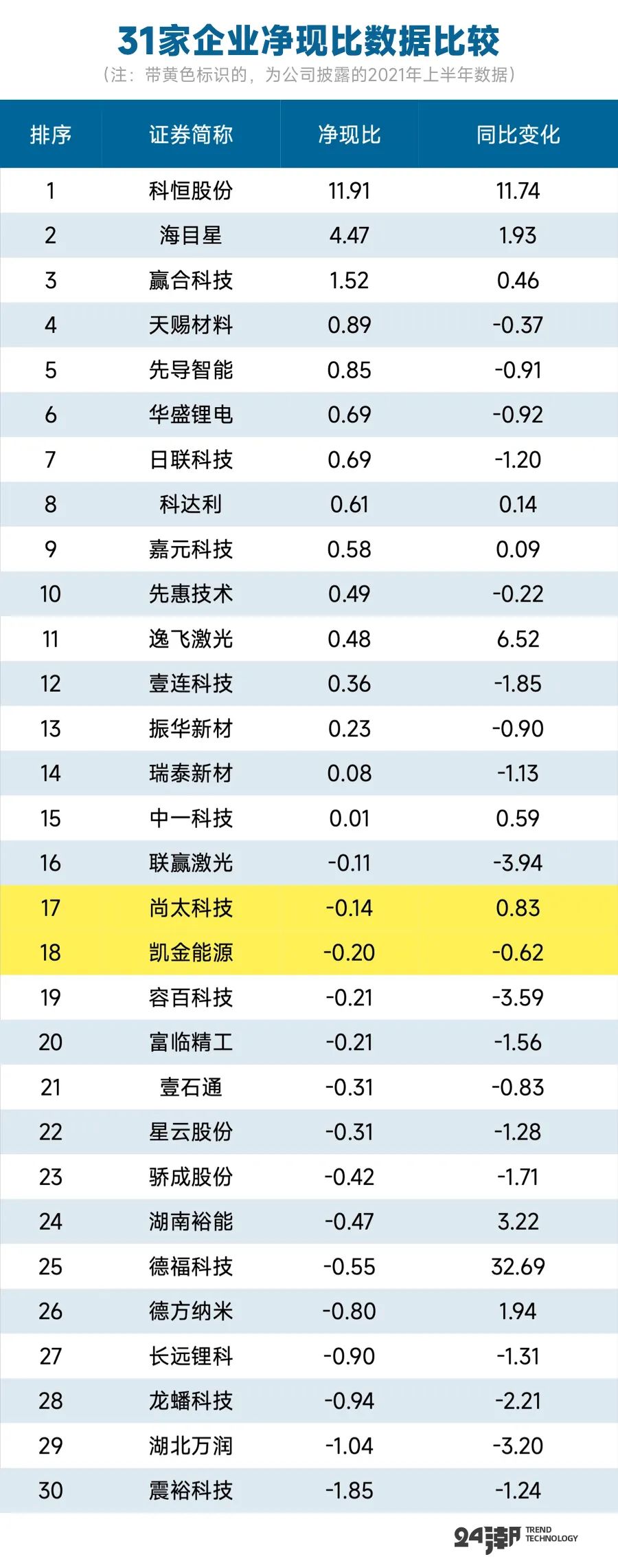但是据24潮计算,2021年上述企业整体的净现比仅为0.16,同比下降了1.27。