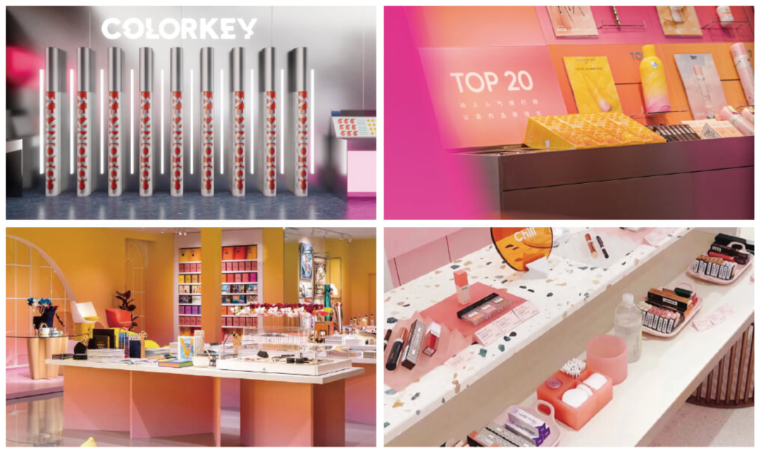 WOW COLOUR初期的选品走国潮美妆路线,引入橘朵、VNK、Girlcult、Colorkey、荔萌荔曼等一众当时大火的国货美妆品牌,加之明快鲜艳的门店设计,一站式购全的货架陈列,的确吸引了不少年轻人进店。