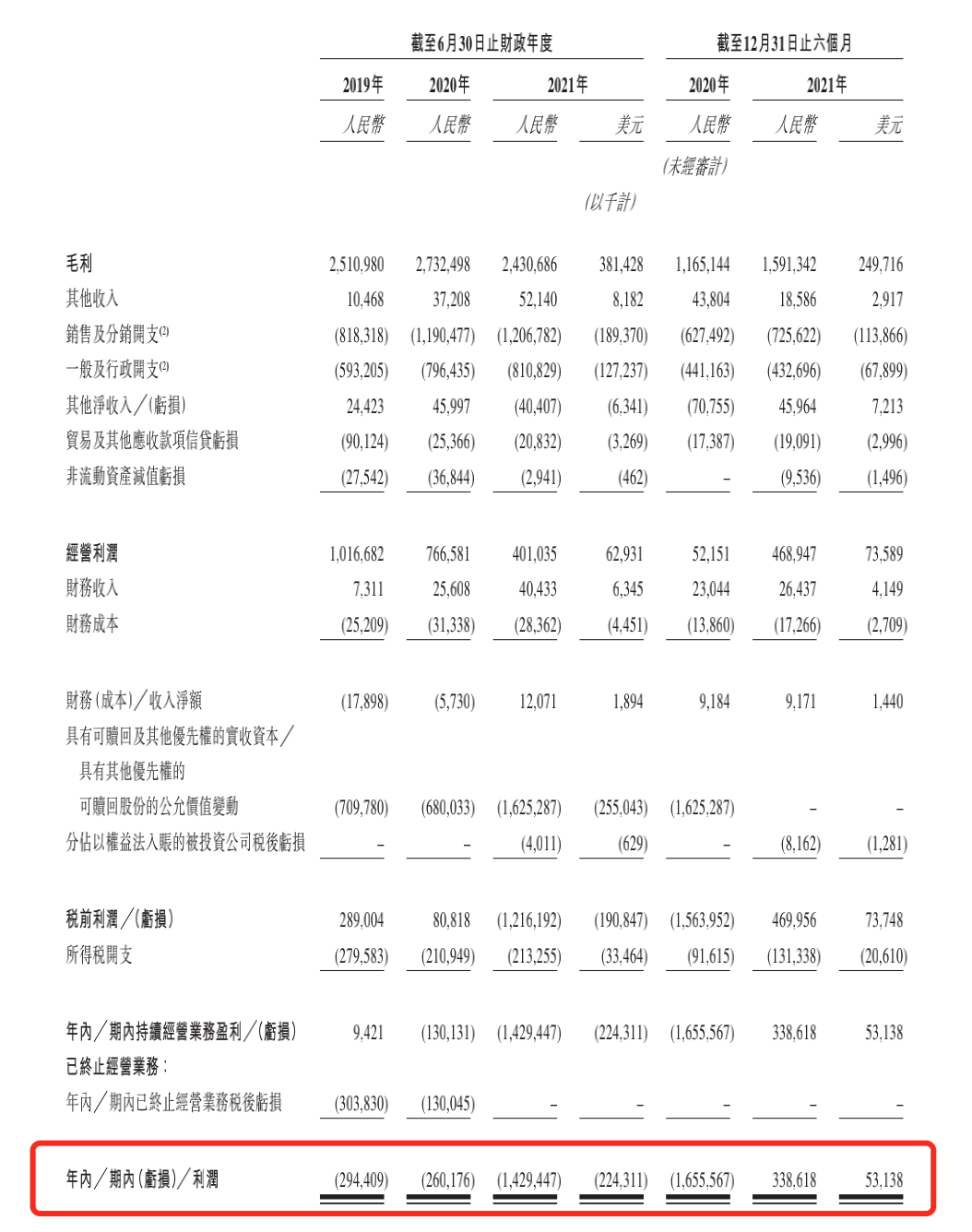 《招股书》还显示,截至2019年、2020年以及2021年6月30日止的三个财政年度,名创优品分别亏损2.94亿元、2.6亿元及14.29亿元,三年来合计亏损达到19.83亿元。