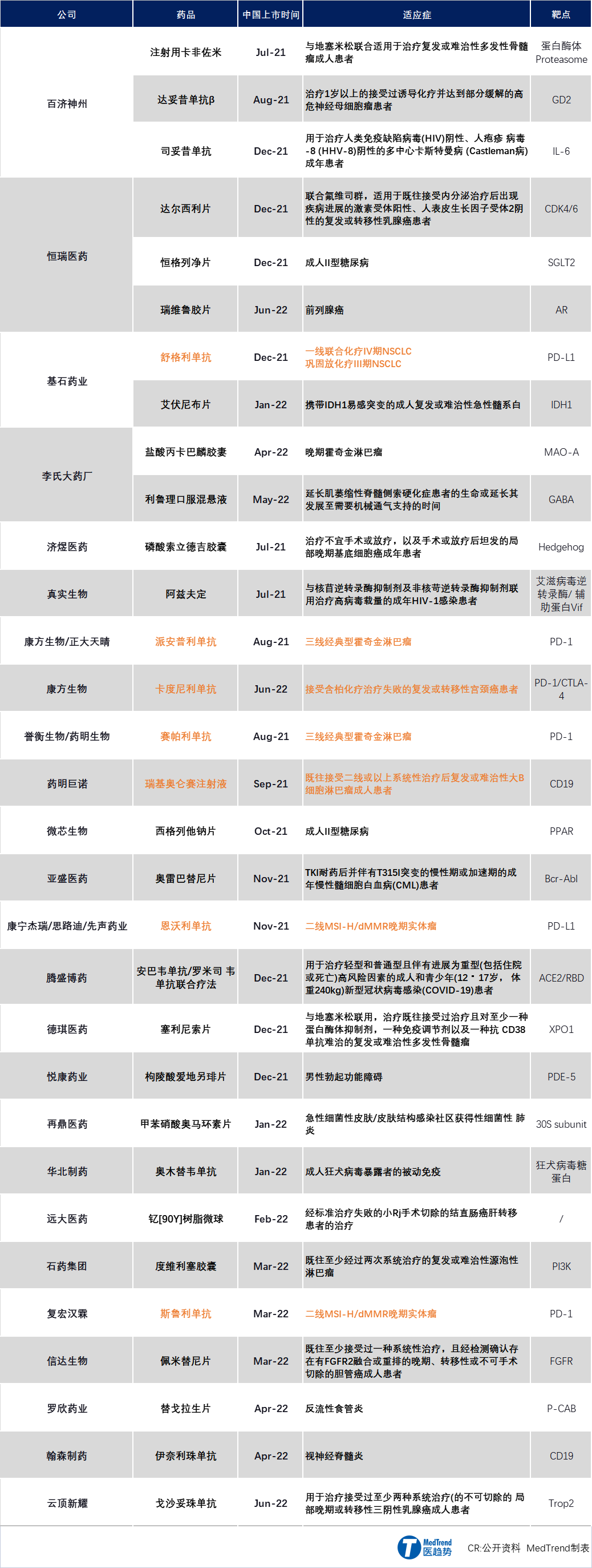 此外,信达、君实、再鼎、微芯、亚盛、基石药业、云顶新耀等创新药企也将携其创新产品参与医保谈判。