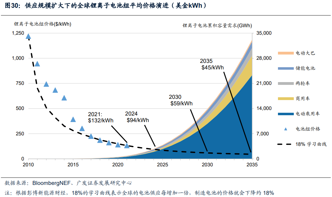 2010年全球锂离子电池成本高达1200美元/kWh。