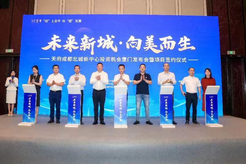 7月15日,由中共成都市金牛区委、成都市金牛区人民政府主办,成都市金牛区荷花池国际商贸城管理委员会、成都市金牛区投资促进局、成都市金牛区土地利用中心承办的“未来新城·向美而生”——天府成都北城新中心投资机会发布会暨项目签约仪式在厦门举行。成都量力集团、成都轨道城市投资集团有限公司、幺零叁玖(福建)贸易发展有限责任公司、厦门建发集团有限公司等30余家成都和厦门知名机构、企业代表汇聚一堂,共商发展、共谋未来、共享机遇。