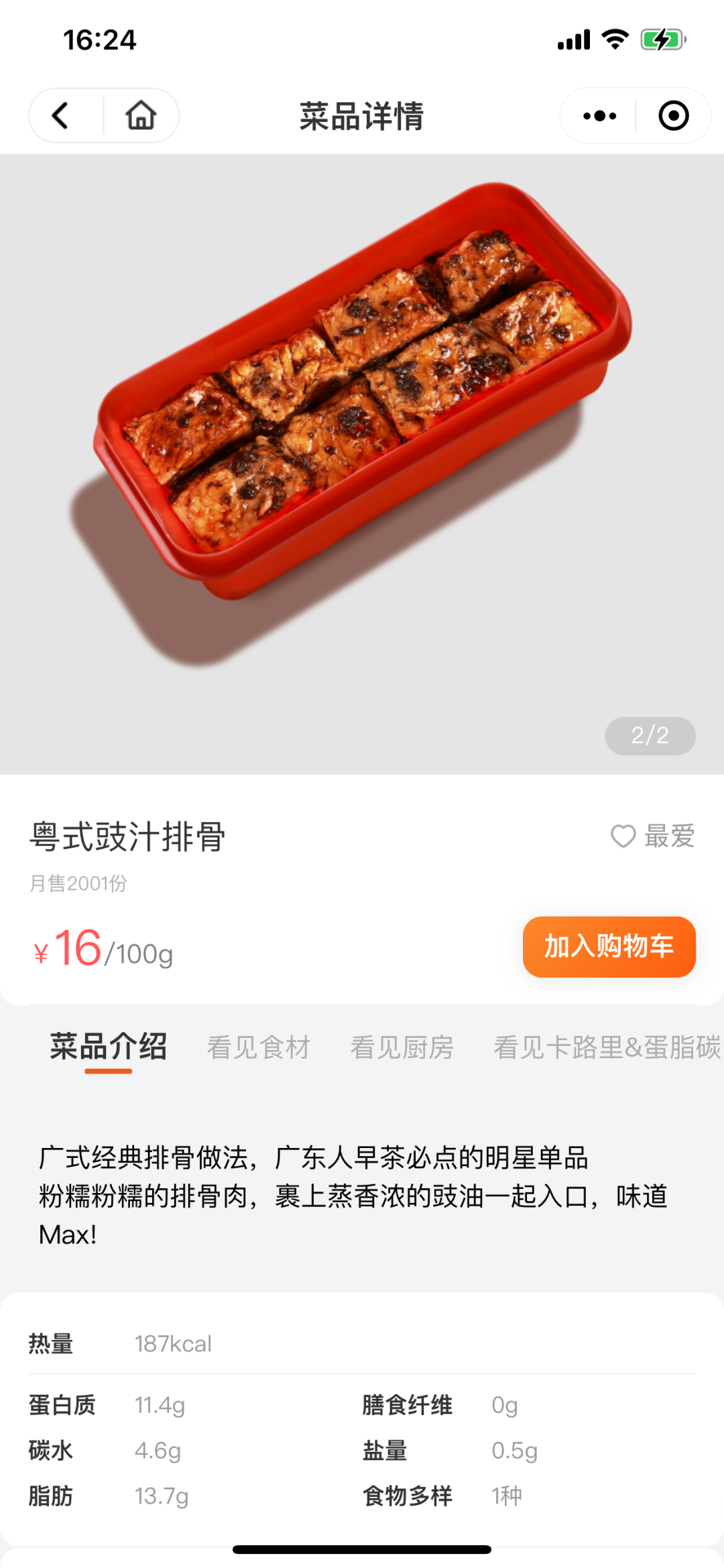 标有卡路里数据的维小饭“控卡餐”餐品。图片来源于维小饭小程序