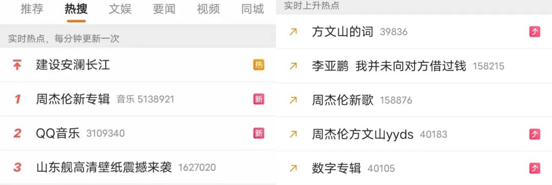 6月19日,周杰伦在社交平台上发布了11分钟的新专辑前导纪录片,并在片尾公布了新专辑上线时间。消息立刻如炸弹一般点燃舆论引线,#周杰伦新专辑前导纪录片#、#周杰伦新专辑名字#等相关话题立刻登上微博热搜,网友们纷纷在话题下留言评论。