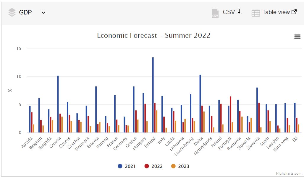 但欧盟经济事务委员真蒂洛尼(Paolo Gentiloni)警告,由于俄乌冲突和天然气供应前景不明,欧盟现在的预测有高度不确定性,有可能进一步下调。