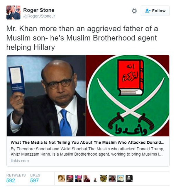 正在事态恶化、需要有人出来灭火的时候,特朗普的老友兼顾问斯通(Roger Stone)却跳出来添了一把火。斯通在Twitter上发文称希尔是穆斯林兄弟会的间谍,专门来帮助希拉里。