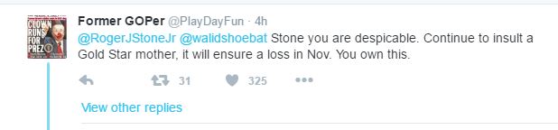 这篇推文一出来就遭到了网友的群攻,有前共和党人称斯通在侮辱阵亡士兵家属,这种做法将毁掉共和党在总统大选中获胜的机会。