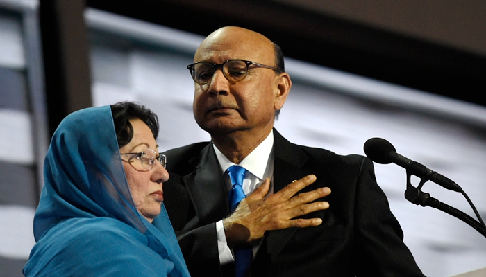 这名父亲希尔·汗(Khizr Khan)出生在巴基斯坦,后来和家人从阿联酋移民到美国。他27岁的儿子、在美国陆军服役的Humayun Khan于2004年在伊拉克被汽车炸弹炸死。