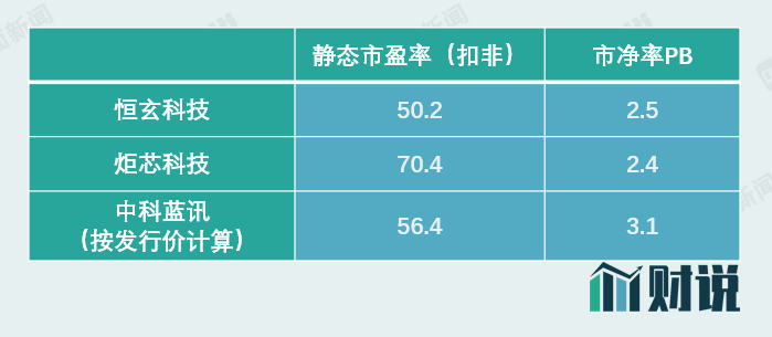 在基本面并不扎实的情况下,高估值自然成为原罪。中科蓝讯此次发行价为91.66元/股,按照发行后总股本1.2亿股计算,估值达到110亿元,对应静态市盈率(扣非)为56.4倍,横向对比看,介于恒玄科技(50.2倍)和炬芯科技(70.4倍)之间。从市净率看,中科蓝讯的3.1倍则高于恒玄科技和炬芯科技较多。