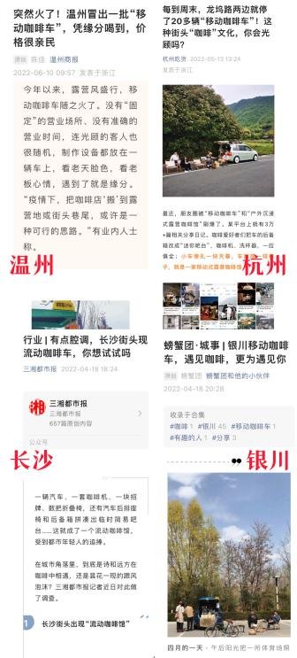 随着“摆摊+户外+咖啡”这三大时代关键词在国内成功牵手,移动咖啡车也乘风而起,成为年轻人新宠。目前,小红书“移动咖啡车”相关笔记已悄悄超过4万条,各大媒体争相报道本地移动咖啡车现状。其中有开在露营基地的,有开在允许摆摊的城市街边的,也有开在体育馆、艺术馆露天停车场的。移动咖啡车在城市中见缝插针,成为钢铁森林中年轻人逃离束缚的又一出口。