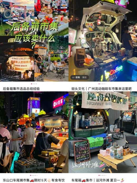 除了这些高阶玩家的“旅居咖啡”,许多文旅项目也开始主动引移动咖啡车入驻,吸引年轻客群,完成自我升级。由于户外调性和消费人群契合,咖啡车成为了各大音乐节的标配,即将在贵阳举办的雪花啤酒音乐节,也标明将有移动咖啡入驻;徐州某文创小镇引进了移动咖啡车,为年轻旅人提供治愈夜晚;而多地兴起的“后尾箱市集”也为移动咖啡车提供了发展的温床。