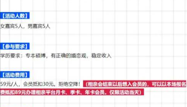 这些飞盘相亲局倒不像引发争议的“高端局”设置了资产容貌门槛,但还是会对报名者进行一些限制。比如主打高知相亲的组局者,会要求报名者学历硕博;主攻阿宅脱单的,则会要求报名者对二次元文化有一定了解。