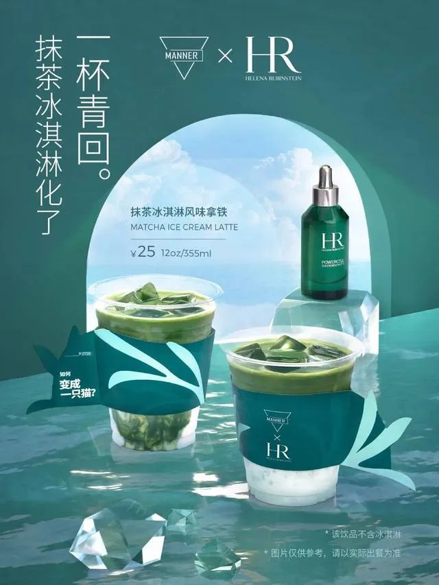 6月24日到7月15日,赫莲娜与Manner推出“一杯青回”主题活动,线上以主题短片《青春有问题》连接年轻消费人群,线下活动设定以穿绿色服饰领福利、消费饮品领取护肤品小样、凭小红书打卡笔记领取护肤品中样等多种互动方式吸引消费者到店参与。