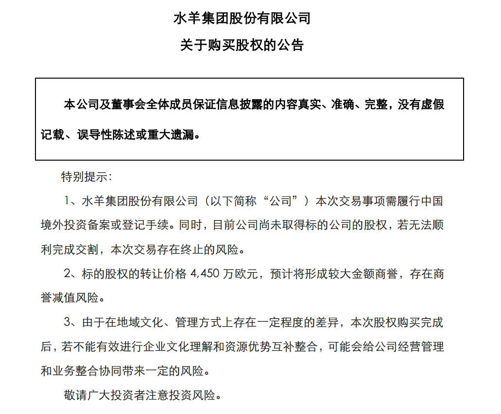 值得关注的是,公告还表示,标的股权的转让价格3.03亿元,预计将形成较大金额商誉,存在商誉减值风险。