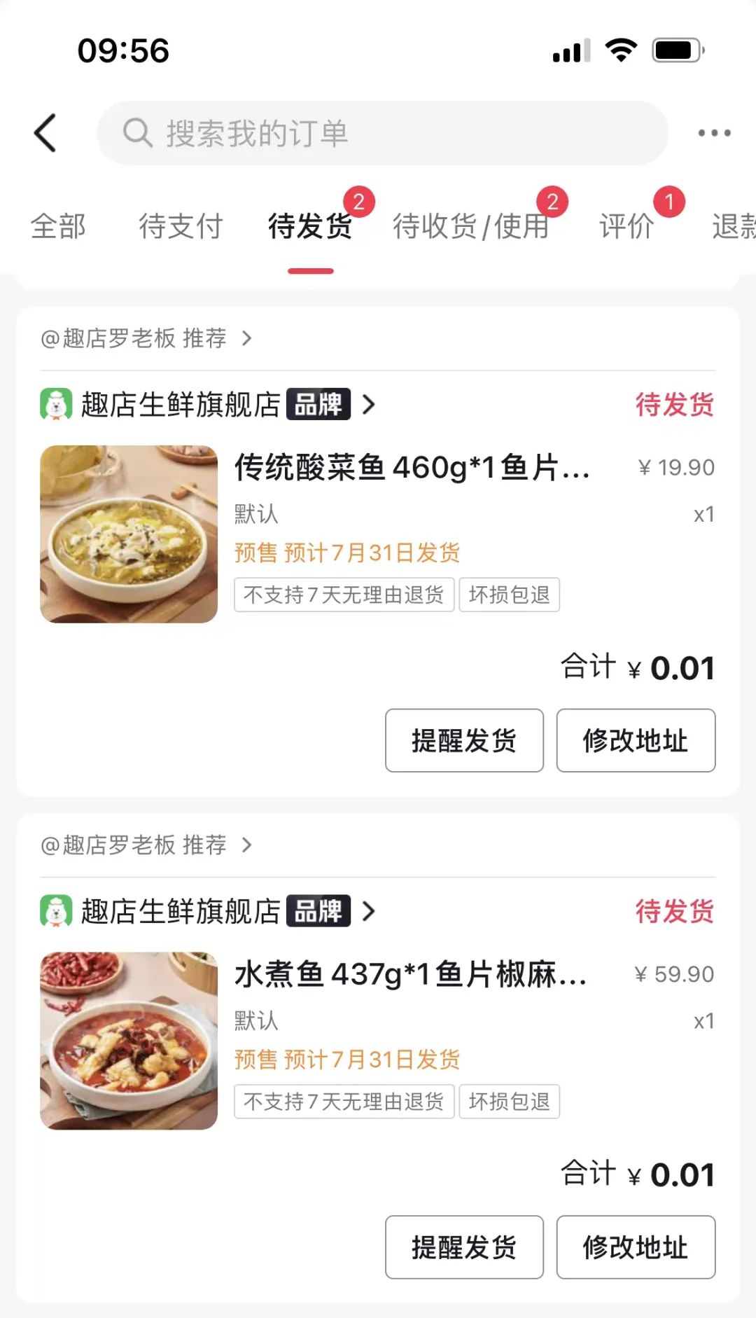 与之前的直播场次相比,昨天罗老板除了将直播时长拉长数倍,更重要的原因还有一分钱酸菜鱼、水煮鱼的抢购活动。在这场直播过程中,一共派发了上百万份的一分钱酸菜鱼和水煮鱼,众多的网友纷纷晒出自己的抢购订单,实实在在的优惠,引发了全网的口碑传播,成为一场预制菜的全民狂欢盛宴。