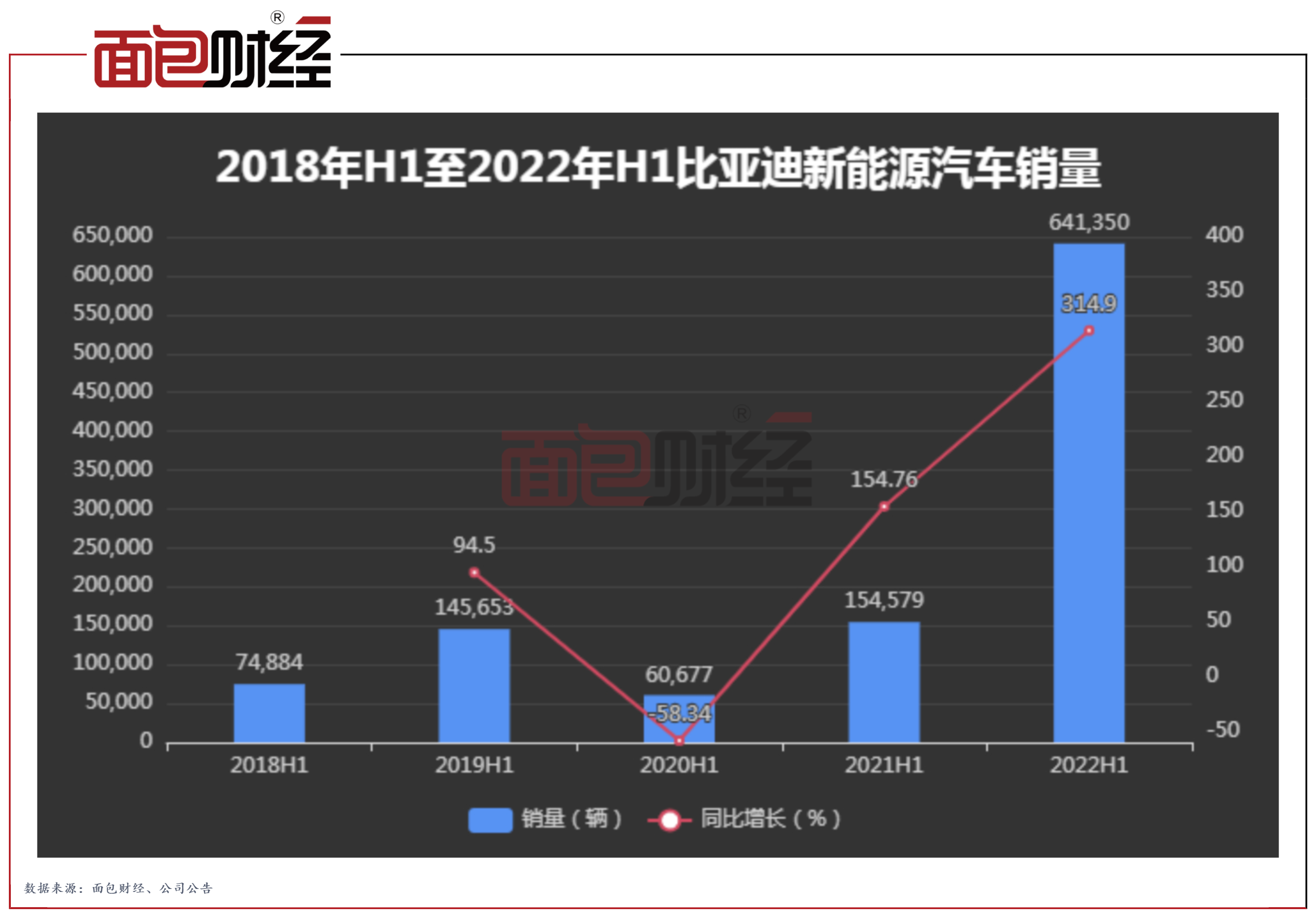 2021年上半年,比亚迪实现新能源汽车销量64.1万辆,同比增长314.9%,销量、增速均创同期新高。