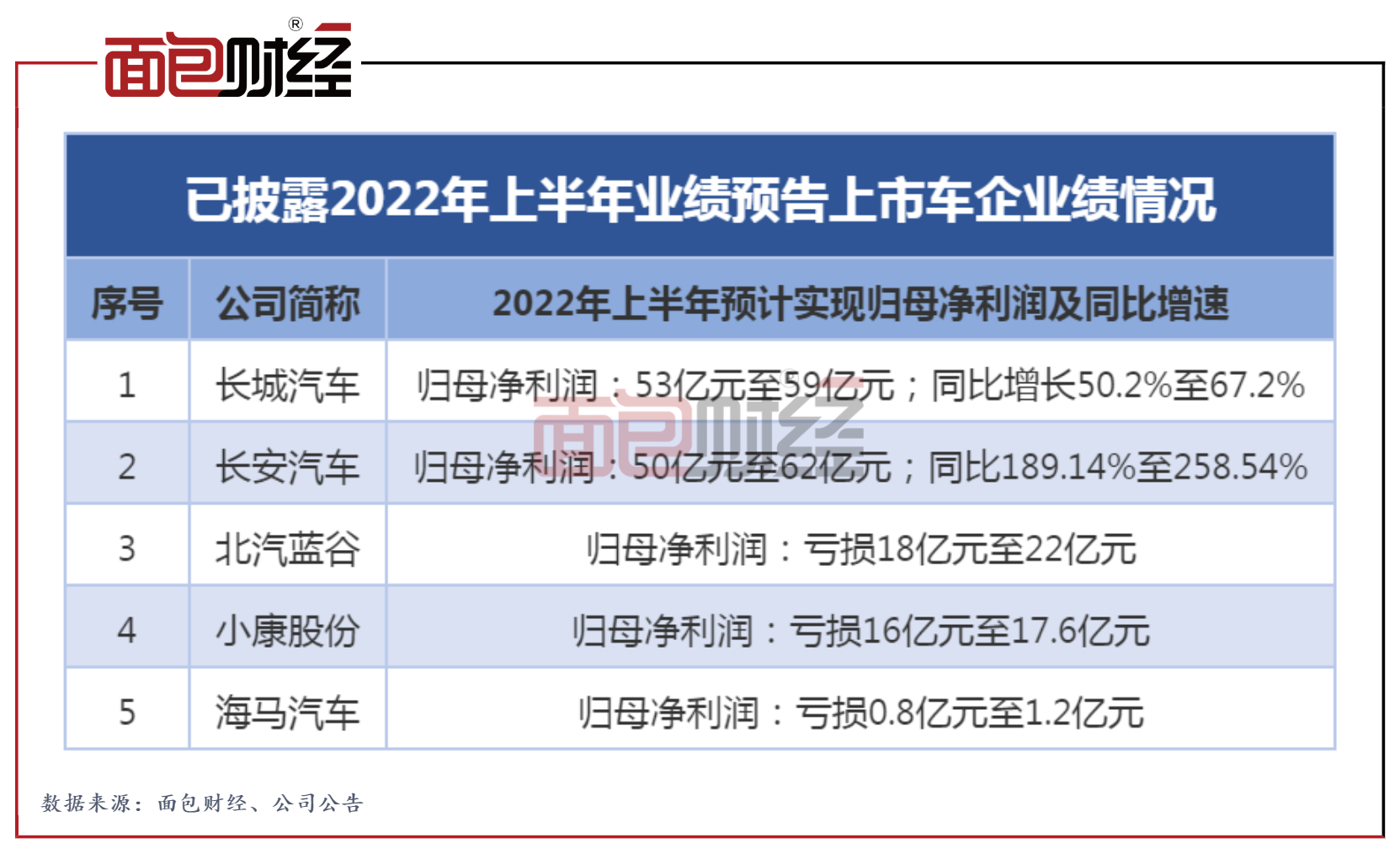 北汽蓝谷、小康股份、海马汽车预计上半年归母净利润继续亏损,亏损均可能呈扩大趋势,其中北汽蓝谷亏损上限预计达22亿元。