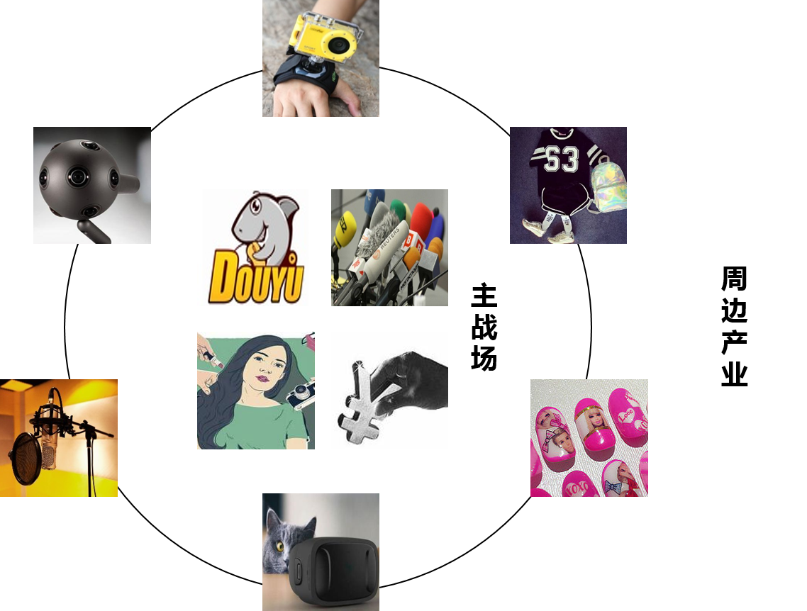 目前网红产业的主链条,主题包括视频平台、主播、媒体、投资、电商、经纪公司等,这些构成了网红经济的主战场。未来,在主战场周围,将会催生出来一些基于网红经济的相关产业,这些附属产业构成了网红经济的外围生态。