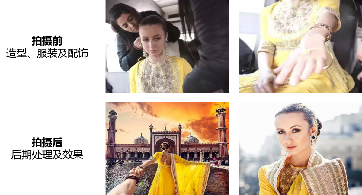 在国外,这种例子屡见不鲜。例如Murad Osmann和Natalia Zakharova,这对俄罗斯情侣拍摄的系列照片《Follow Me》今年在Instagram上爆红。除了秀恩爱之外,这部作品的亮点,是女主角根据不同的场景搭配相应的服饰和造型,与拍摄环境形成整体效果,她本人也因此迅速火爆。