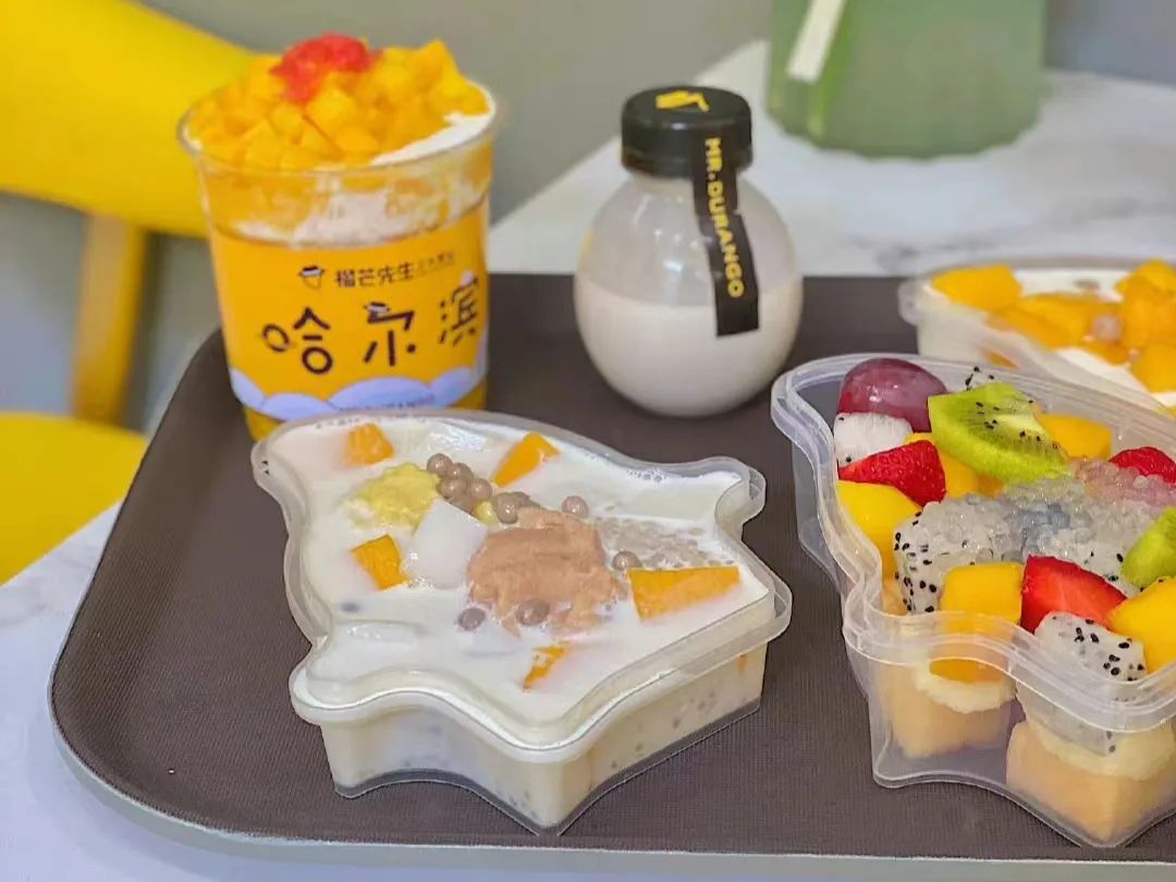 榴芒先生,是一个开出300+门店的水果捞品牌。它最早在哈尔滨密集开店,以“一盒集齐10种水果”的酸奶水果捞打开市场,销量累计突破1亿份。