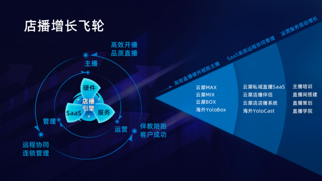 同时,在会上云犀CEO程景对云犀店播增长飞轮模型进行了详细拆解,未来的云犀将持续聚焦店播场景,围绕主播、管理、运营三大层面,以“SaaS+硬件+服务”的三轮驱动体系,为企业商家提供全链路店播解决方案。
