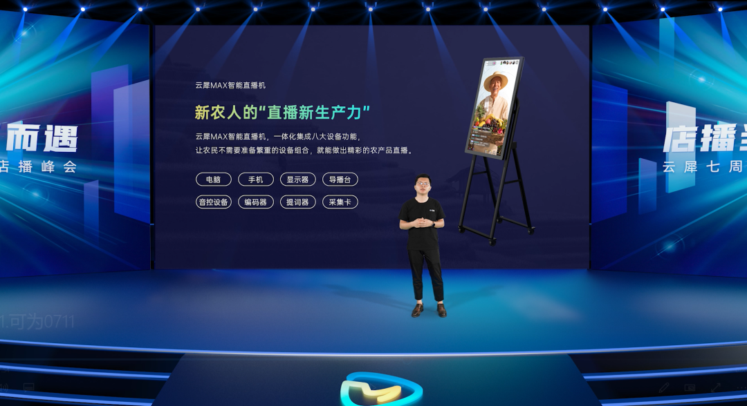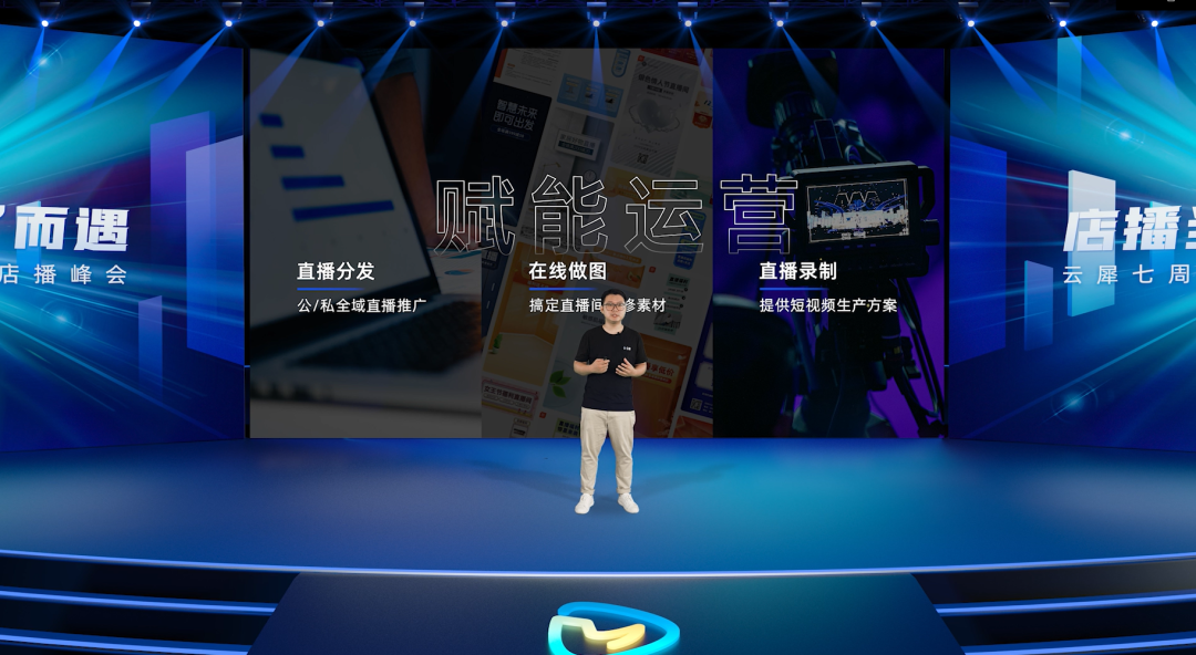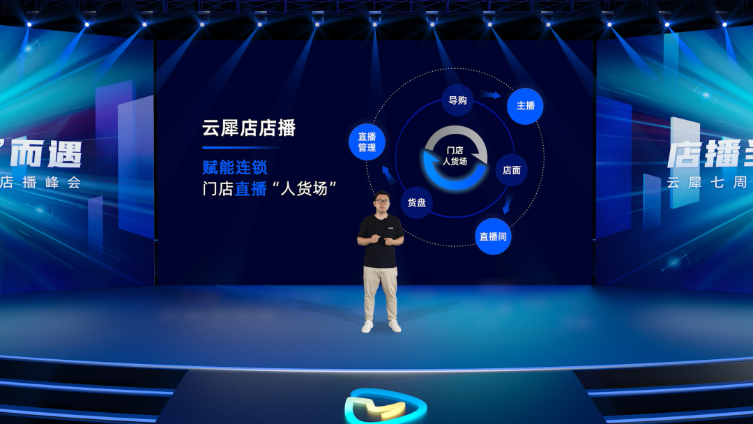 在这次7周年店播峰会上,针对店播场景下新零售用户导购直播上手难、直播场地搭建难、总部运营管理难等一系列痛点,云犀产品负责人胡亚龙表示云犀店店播的应用将在“人货场”三方面全面助力新零售商家激活直播价值。