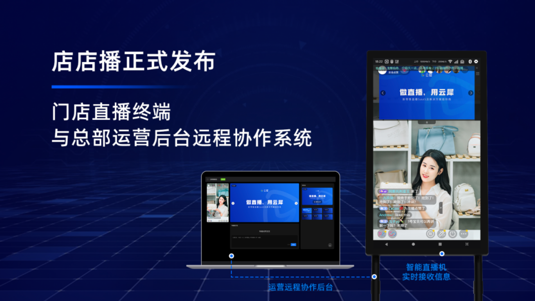 借助云犀店店播系统,零售行业连锁品牌的日销经营将摆脱过去货等人、店等人的无力局面,实现人货实时互动、高效匹配。这也意味着门店直播终端与总部后台管理将全方位打通,可以更好地满足连锁零售企业在远程管理、数据沉淀、客户资产等多方面的需求,实现品牌数字化管理。