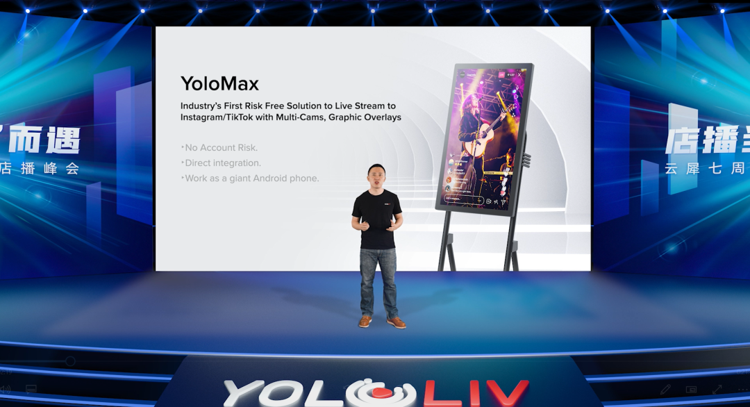 在7周年店播峰会上,云犀YoloLiv业务负责人Frank Zhu宣布了海外全新私域SaaS产品YoloCast的发布。