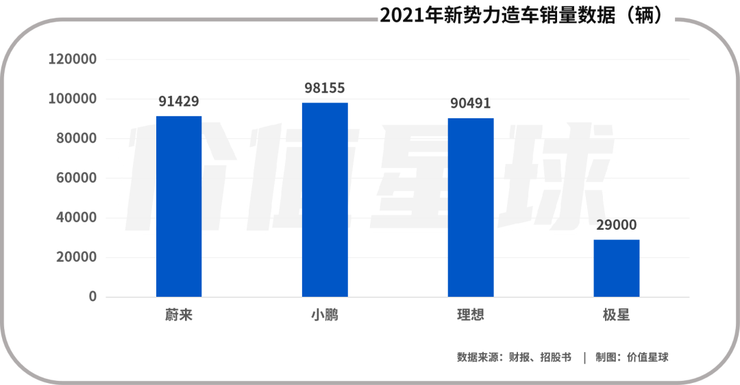 但是即使如此,极星汽车的销量也并不理想。据其公布的销量数据显示,2021年全年极星汽车和销量为29000辆,而同期的“蔚小理”销量均已超过90000辆。