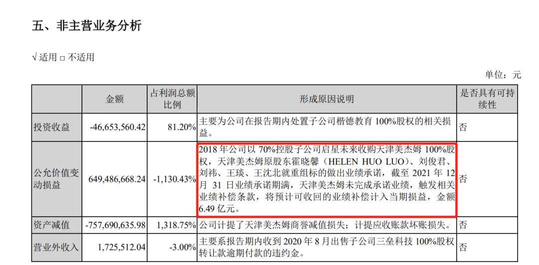 同时,美吉姆称,公司自2021年11月26日暂停履行《业务托管协议》,本报告期不再收取上述《业务托管协议》相关托管费。另外,公司于2021年12月完成出售子公司北京楷德教育100%股权,本报告期楷德教育业绩不再合并在业绩表内。