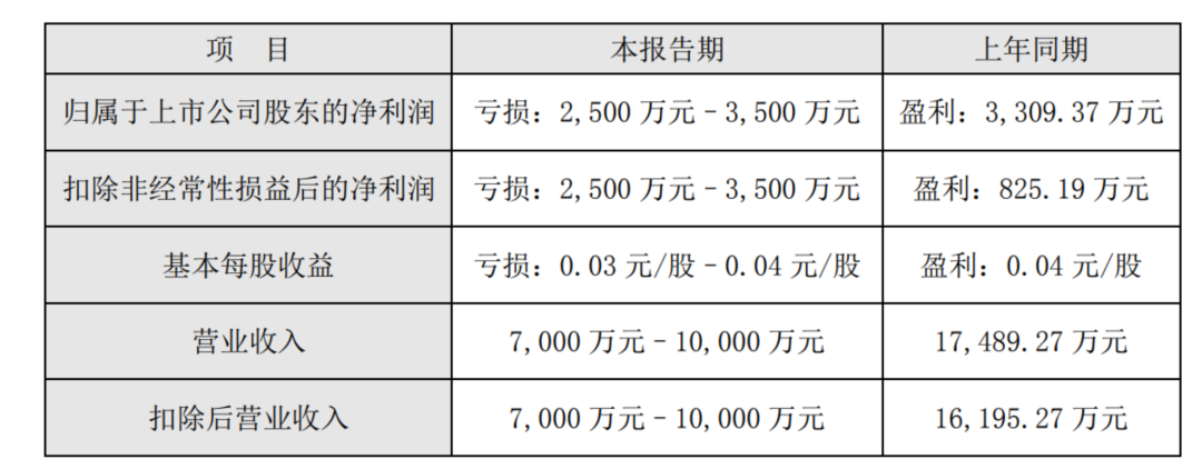 预计净亏损2500-3000万元,上年同期则实现盈利3309.37万元;扣非后预计亏损2500-3000万元,上年同期则盈利825.19万元。