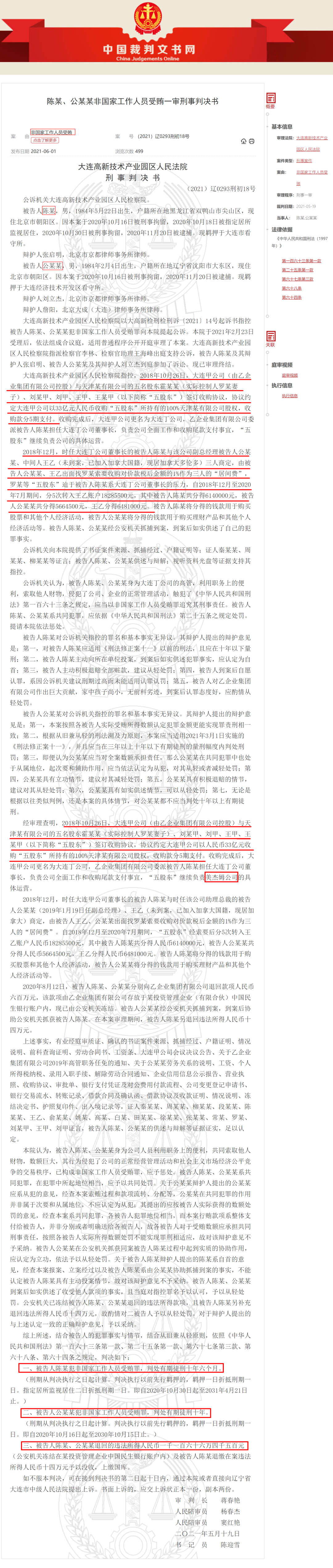 蓝鲸教育查询中国裁判文书网信息发现,该案已于2021年5月19日由大连高新技术产业园区人民法院宣判,陈鑫犯非国家工作人员受贿罪,判处有期徒刑十年六个月。