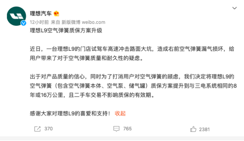 舆论“高杠杆”+精准掉链子,使理想L9的空气悬架断裂事件,演绎成新能源汽车圈“顶流塌房”式的舆论风波。