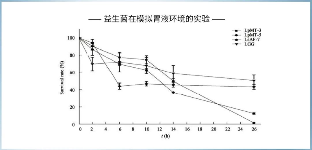 益生菌在胃液中时间越长,存活率越低,呈加速衰减的趋势。图片来源:微生物学通报