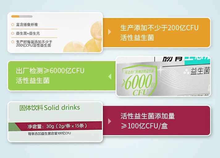 目前,市场上的产品主流活菌数标签以“生产添加”和“出厂检测”为主,有的甚至只标注活菌数。考虑到益生菌产品从生产到消费的过程中各个环节的损失,越靠近消费者食用环节的活性检测数据可靠性越高,产品品质越有保证。