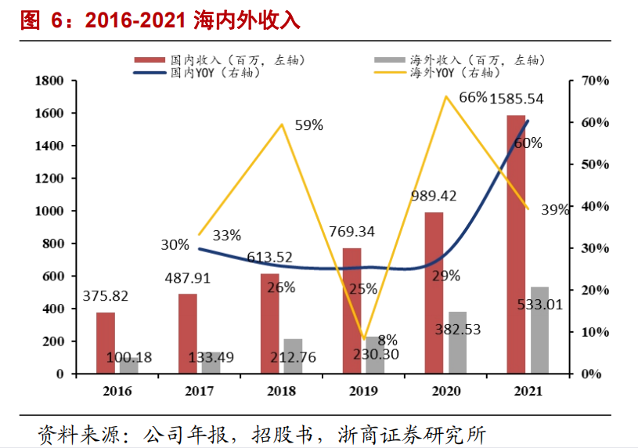目前,海尔生物找到的路径之一是加速国际化。2016-2020 年,公司海外业务复合增速为39.9%,大于国内业务增速。截至2021年末,海尔生物海外经销网络总数超过500家,当年新增208家,海外市场实现收入5.33亿元,同比增长39.34%。