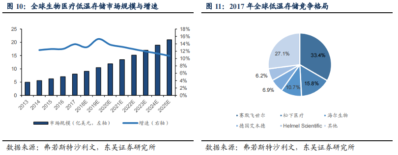 根据弗若斯特沙利文报告,预计到2025年,全球生物医疗低温存储市场规模约为20.95亿美元,中国市场约为45.59亿元。海尔生物已经做到了行业龙头,2021年21.26亿元的营收,就算把其他玩家都排除在外,满打满算也只有20多亿的成长空间。