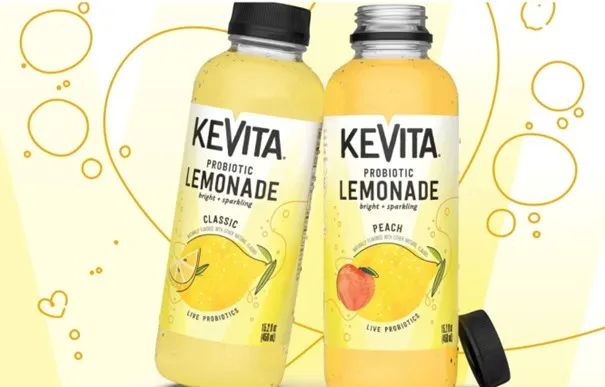 近日,百事公司旗下发酵饮料品牌KeVita推出气泡益生菌柠檬水,新品包含两种口味:经典味和桃子味,在美国全国范围内均有销售。