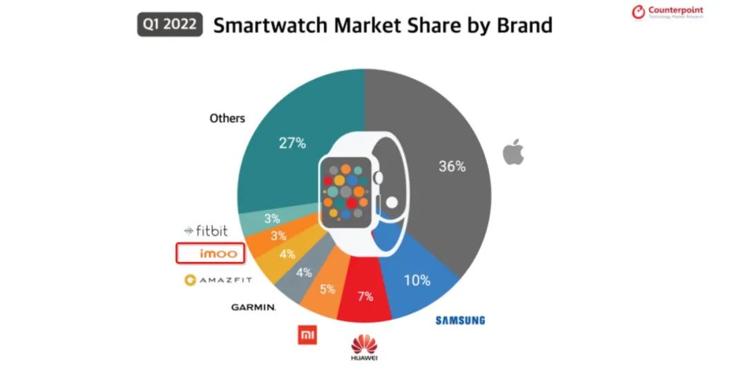 小天才智能手表海外品牌名“imoo”全球智能手表市占3%(图源 Counterpoint)