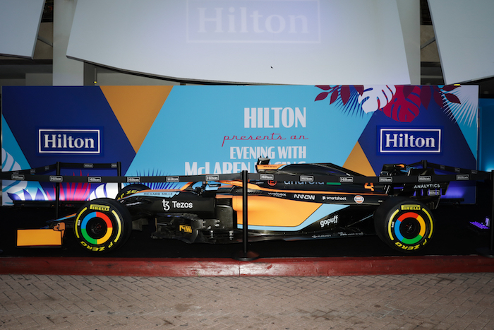2022年初,希尔顿与迈凯伦竞速再度续签自 2005 年以来建立的长期合作关系,令希尔顿荣誉客会会员在未来的更多比赛上都有机会前往氛围紧张刺激的F1赛场,身临其境地感受这一国际赛事。而在2022年度迈阿密大奖赛上,会员以积分竞拍的方式赢取比赛日入场券,获得进入围场俱乐部(Paddock Club)、体验迈凯轮VIP礼遇、享用四道式精致午餐、以及前往维修站和车队参观的专属体验,更有幸运儿能在比赛前与车手Lando Noris会面。